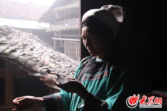 水族女子在繡制馬尾繡。她們抽空就繡幾針,不計(jì)工時(shí)費(fèi),因此繡品價(jià)格相對(duì)較低