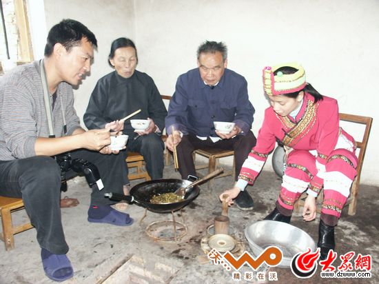 大眾網(wǎng)-聯(lián)通3G羅城11月26日訊(特派記者 劉國棟) 處于桂北九萬大山深處的羅城仫佬族自治縣,全縣35萬人口中有13萬是仫佬族,占全國仫佬族人口的80%,是全國惟一的仫佬族自治縣。九年前,施曉亮就在此采訪仫佬族。九年后,我們再次來到了這個桂北小城,并找到了當年陪同施曉亮采訪的時任羅城縣委宣傳部副部長謝盛鉅,如今他的名片上換上了“中國音樂文學學會會員、廣西攝影家協(xié)會會員、影視音樂制作人”,剛剛退二線的他并未賦閑,每天不是上山下鄉(xiāng)拍攝民俗,挖掘、收集、拍攝民歌,就是在自己投資幾十萬的音樂工作室里對這些仫佬民歌進行后期整理,自稱比“上班還忙”。