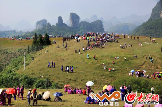 仫佬族走坡節(jié)是青年男女傳情達意的平臺。(謝盛鉅 攝)