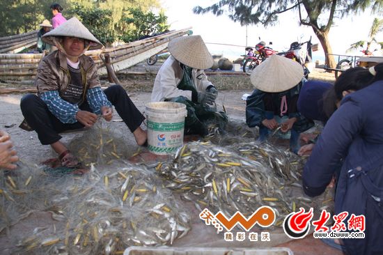 京族人靠海吃海,批發(fā)價(jià)10塊錢的沙丁魚,一天下海撒網(wǎng)兩次,一網(wǎng)就能捕到100多斤,收入不菲。