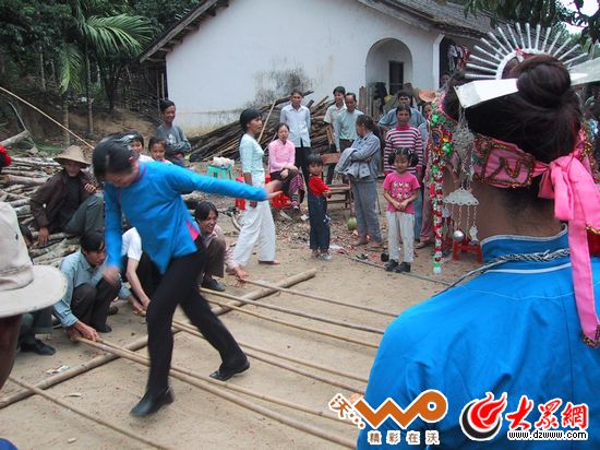 跳竹竿也是黎族人最喜歡的娛樂活動(dòng)。(施曉亮 攝)