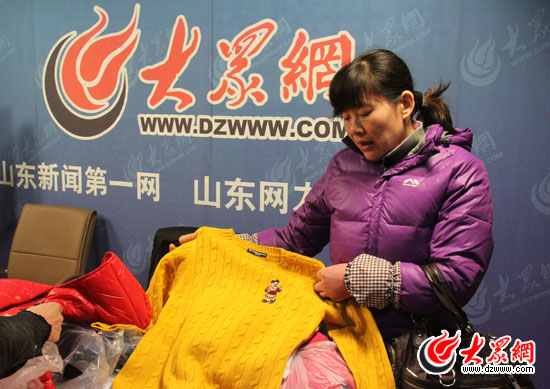 大眾網(wǎng)濟(jì)南12月26日訊(記者 王磊 盛堃 馬鑫)連日來,由大眾網(wǎng)、濟(jì)南嬰貝兒母嬰購物廣場(chǎng)、山東公益聯(lián)合發(fā)起的“千家愛百家衣”活動(dòng)引起了全省網(wǎng)友的廣泛關(guān)注。今天上午,濟(jì)南市一家愛心企業(yè)的兩位職工代表手提4大包棉衣來到大眾網(wǎng)編輯部,把40余件“愛心衣”捐給山里的孩子們,其中的王女士告訴記者,這個(gè)活動(dòng)是他們經(jīng)理群發(fā)手機(jī)報(bào)告訴大家的,從2008年汶川地震至今,他們公司員工每年都參加一到兩次愛心活動(dòng)。