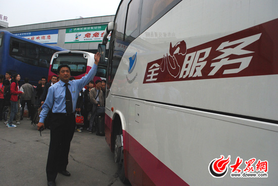 劉國棟 來源: 大眾網(wǎng)[提要] “十一”黃金周的第一天,早上6點,大眾網(wǎng)記者來到號稱“中華第一站”的濟南長途汽車總站,因為工作超級繁忙,大眾網(wǎng)記者只能一路小跑,“追”著采訪調(diào)度科副科長張傳滿。