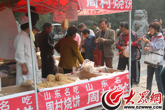 記者發(fā)現(xiàn),山會(huì)上最受游客歡迎不是沒有特色的旅游紀(jì)念品,而是有特色的民間小吃,像天津大麻花、廣州老婆餅、東北的朝鮮打糕都吸引了大量游客,周村燒餅、宗記鍋餅、山東大棗等本地貨也很受歡迎。在一家“周村燒餅”攤位上擺滿了原味、五香、奶油等多種口味的燒餅,購(gòu)買燒餅的游客絡(luò)繹不絕,很快就賣出了幾十袋,還不斷有游客過來詢問價(jià)格。另外,像孔府煎餅、商河酥餅也很受青睞。