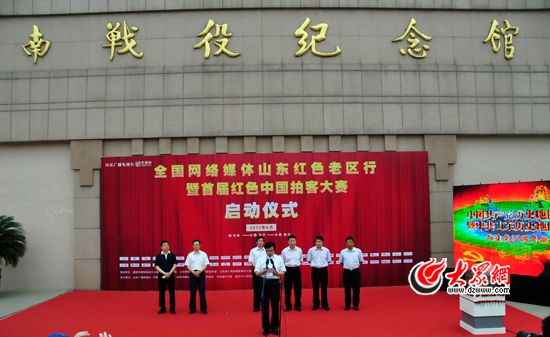 啟動儀式由中共山東省委外宣辦、省政府新聞辦主任李建軍主持,山東省網(wǎng)絡(luò)文化辦公室主任劉致福介紹了采訪活動的有關(guān)情況,山東廣播電視臺臺長韓國強(qiáng)代表承辦方致辭!叭珖W(wǎng)絡(luò)媒體山東紅色老區(qū)行”活動由中共山東省委宣傳部、省政府新聞辦公室、省網(wǎng)絡(luò)文化辦公室主辦,山東廣播電視臺、齊魯網(wǎng)承辦,人民網(wǎng)、新華網(wǎng)、中國網(wǎng)等中央重點(diǎn)新聞網(wǎng)站,千龍網(wǎng)、東方網(wǎng)等地方重點(diǎn)新聞網(wǎng)站,新浪網(wǎng)、搜狐、網(wǎng)易等知名商業(yè)門戶網(wǎng)站,以及山東省各主要新聞網(wǎng)站50余家網(wǎng)絡(luò)媒體的100多名編輯記者參與考察采訪活動。
