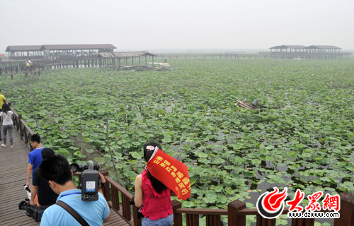 大眾網(wǎng)濟(jì)寧6月18日訊(見習(xí)記者 尹海洋) 18日上午,“全國網(wǎng)絡(luò)媒體山東紅色老區(qū)行”采訪團(tuán)在經(jīng)過三個(gè)小時(shí)的車程后,到達(dá)濟(jì)寧市微山縣。記者看到,靠“紅色旅游”享譽(yù)全國的微山縣又打出“生態(tài)”牌,微山縣將紅色旅游與生態(tài)建設(shè)相結(jié)合,將建成亞洲最大的濕地公園——微山湖濕地公園。