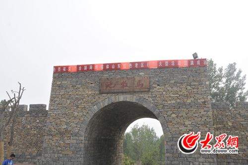 19日下午,采訪團一行來到沂南縣馬牧池鄉(xiāng)常山村,看到昔日貧困的革命老區(qū)現(xiàn)在已修建為沂蒙紅色影視基地。影視基地保留了大量老區(qū)抗戰(zhàn)時期的民居建筑,再現(xiàn)了抗日戰(zhàn)爭時期沂蒙山區(qū)的真實場景。據悉,影視基地于2008年7月開工建設,先后開發(fā)修復了戲臺、關帝廟、地主大院、李家大院、憲兵司令部、炮樓等景點。2010年10月,中國紅嫂革命紀念館和人民子弟兵將帥館正式對外開放,“雙館”的建設成為我縣紅色文化對外傳播的重要載體,也成為景區(qū)發(fā)展紅色旅游的新亮點。景區(qū)于2010年11月通過國家3A級景區(qū)驗收。沂蒙紅嫂拍攝影視基地繼大型電視連續(xù)劇《沂蒙》在此成功拍攝后,反映抗戰(zhàn)題材的大型電視連續(xù)劇《沂蒙英雄》、《地道英雄》,電影《沂蒙六姐妹》、《一個農民的1978—2008》、《果兒滿山紅》、《干得漂亮》等多部影片都在這里完成了拍攝。