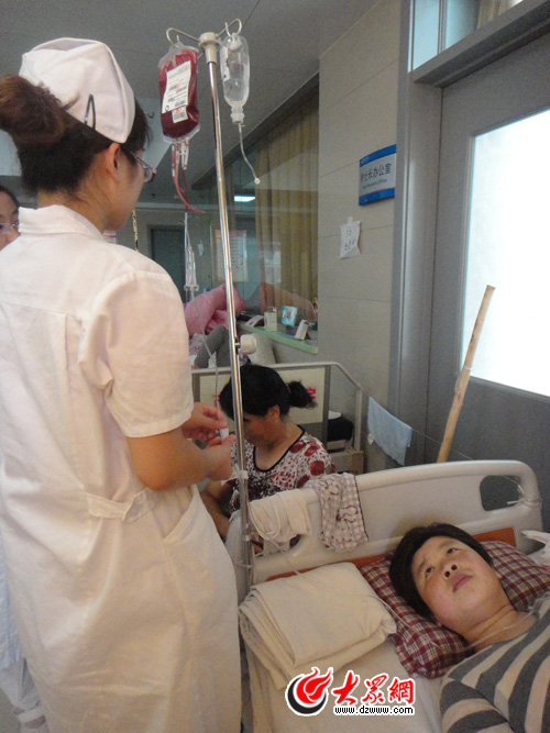 護(hù)士給李雪輸血。