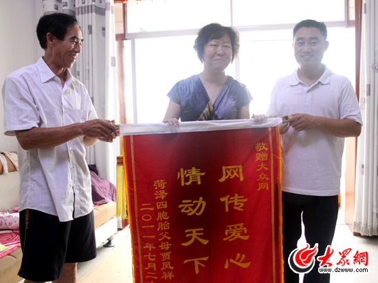 菏澤市慈善總會副會長兼秘書長陳慶峰對大眾網(wǎng)發(fā)起的這場愛心救助活動贊不絕口,他說此次救助四胞胎是菏澤歷次類似愛心活動中募集款物最多的一次,也是網(wǎng)站發(fā)起的規(guī)模最宏大的一次愛心活動。他代表慈善部門對大眾網(wǎng)和熱心企業(yè)、網(wǎng)友表示感謝。
