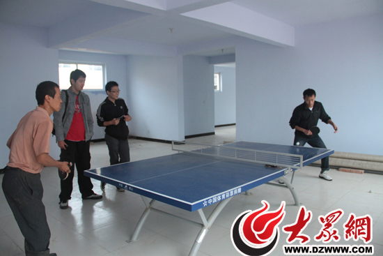 在社區(qū)大樓里的乒乓球室,幾位農(nóng)民正趁著農(nóng)閑時(shí)節(jié)在這里打乒乓球鍛煉身體,“3比5!4比7!7比11!”數(shù)比分的聲音不斷傳出來(lái),村民們打球身手敏捷,一看就是經(jīng)常鍛煉的運(yùn)動(dòng)愛(ài)好者。