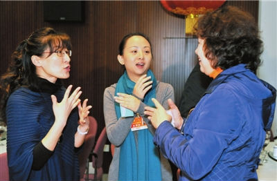 全國(guó)政協(xié)委員邰麗華在助理幫助下與朋友暢談