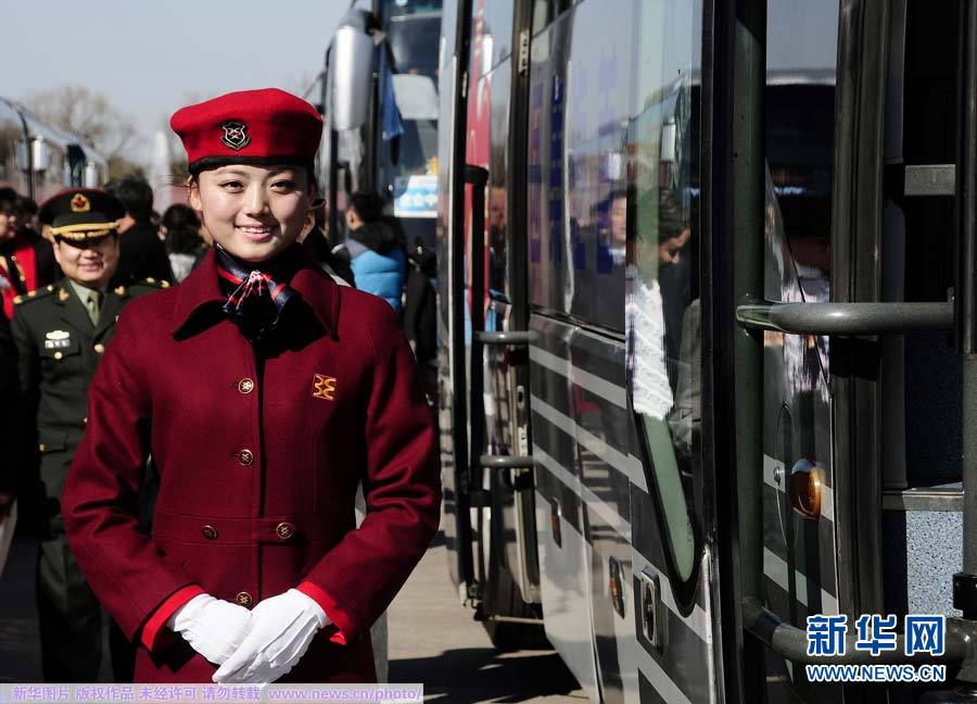 服務(wù)人員成為了大會堂前一道靚麗的風(fēng)景線。