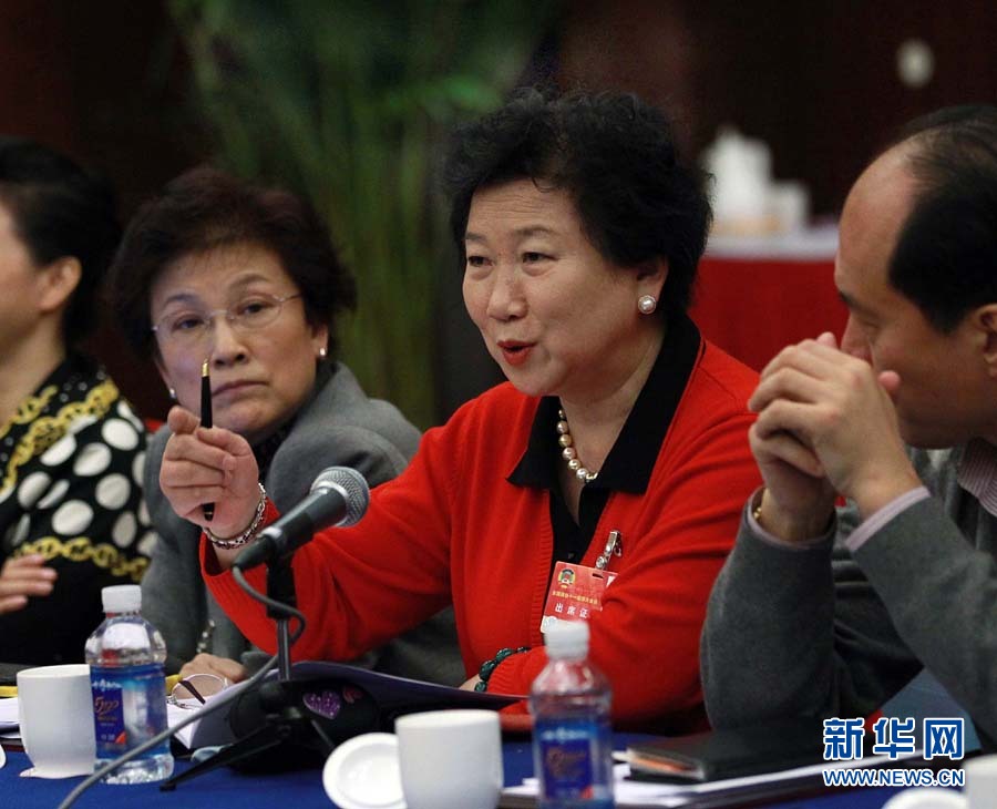 在十一屆全國人大四次會議和全國政協(xié)十一屆四次會議上,女代表女委員認(rèn)真履行職責(zé)、參政議政,為國家貢獻(xiàn)聰明才智。她們以特有的溫柔和細(xì)膩在履職過程中更多、更敏銳地考慮到百姓的需要,在兩會這個中國最高民主政治的舞臺上,發(fā)出一抹抹溫柔的亮色。 3月4日,全國政協(xié)委員侯露(右二)在政協(xié)小組討論會上說,她在關(guān)注民生問題的同時,也十分關(guān)注全社會道德建設(shè)。她認(rèn)為,我國的經(jīng)濟(jì)發(fā)展很快,但社會的誠信缺失已成為各行各業(yè)的一個突出問題。她建議有關(guān)部門應(yīng)認(rèn)真研究這一課題,提出確實可行的解決措施。新華社記者劉衛(wèi)兵攝