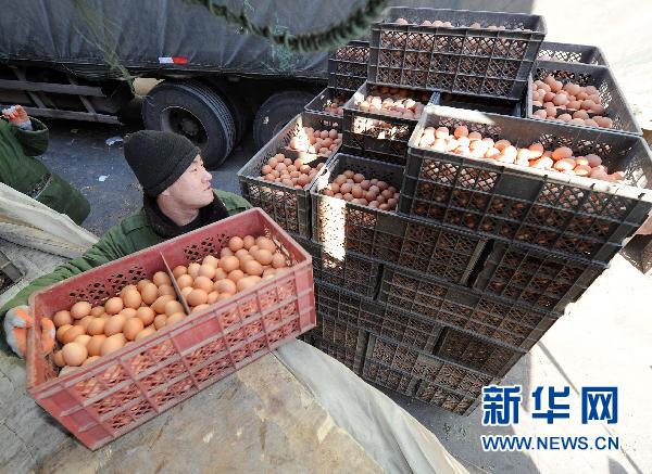 工人在北京新發(fā)地市場搬運(yùn)剛剛運(yùn)抵的雞蛋(2011年1月15日攝)。 “十二五”開局之年,交出“十一五”高分答卷的中國,通脹壓力不斷凸顯,民生難題有待破解,經(jīng)濟(jì)轉(zhuǎn)型面臨挑戰(zhàn),社會(huì)管理呼喚創(chuàng)新。新老問題交織的背景,使今年兩會(huì)關(guān)注度高于往年。 根據(jù)媒體兩會(huì)民意調(diào)查結(jié)果,公眾除對(duì)醫(yī)療、教育、就業(yè)等“老難題”保持關(guān)注外,今年對(duì)物價(jià)上漲、工資增長、城市治堵、搬遷補(bǔ)償、社會(huì)管理等新熱點(diǎn)表達(dá)更多關(guān)切。新華社記者公磊攝
