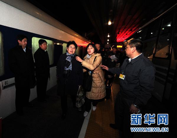 3月1日6時(shí),來自吉林的全國政協(xié)委員乘坐Z62次列車抵達(dá)北京站,這是首批抵京參加全國政協(xié)十一屆四次會(huì)議的京外委員。圖為遲寶榮委員(左三)在出站間隙接受采訪。新華社記者 張鐸 攝