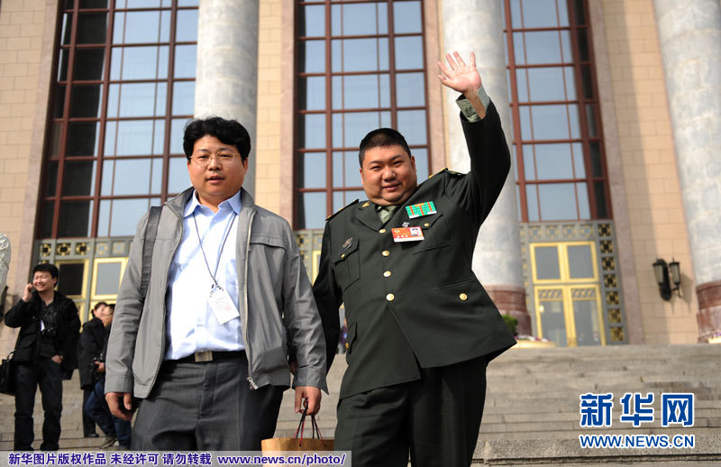 3月13日,全國政協(xié)第十一屆四次會議在京閉幕,政協(xié)委員揮手告別。圖為全國政協(xié)委員毛新宇走出人民大會堂。新華網(wǎng) 翟子赫 攝