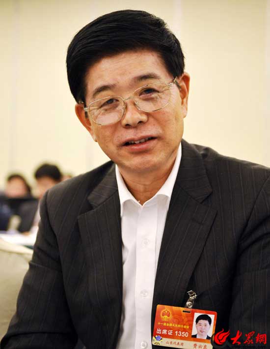 全國人大代表、山東半島藍(lán)色經(jīng)濟(jì)區(qū)建設(shè)委員會主任費(fèi)云良接受大眾日報、大眾網(wǎng)記者聯(lián)合采訪。