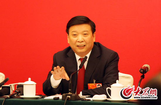 全國人大代表、山東省委副書記、省長姜大明現場回答記者的提問。