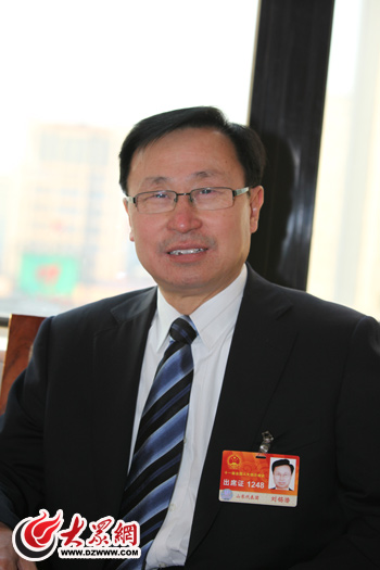 全國人大代表、山東禹王實業(yè)有限公司董事長兼總裁劉錫潛接受大眾網(wǎng)記者采訪。