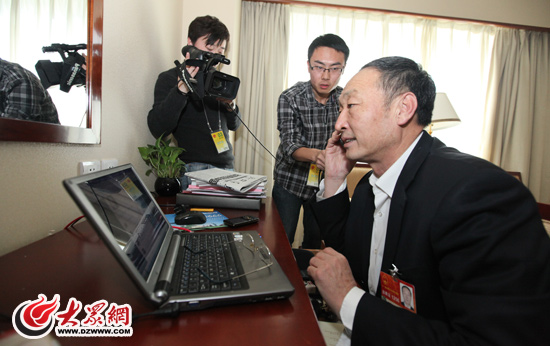 全國人大常委會(huì)委員許振超詳細(xì)詢問了博友“檸檬奶茶”所反映問題的具體情況。(特派記者 曹亮 攝)