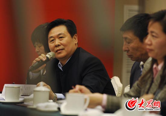 全國人大常委會委員、全國人大代表、山東大學校長徐顯明在接受記者采訪。