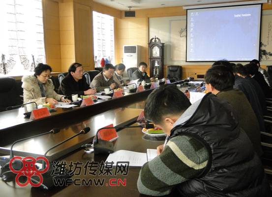 濰坊傳媒網(wǎng)訊 (記者 王寶峰) 11月23日下午,山東省委宣傳部宣教處處長(zhǎng)曲忠強(qiáng)、副處長(zhǎng)孫文利在濰坊市委宣傳部相關(guān)負(fù)責(zé)人陪同下來到濰坊廣播影視集團(tuán),調(diào)研“三個(gè)一切”教育活動(dòng)和“走基層、轉(zhuǎn)作風(fēng)、改文風(fēng)”的落實(shí)情況并召開座談會(huì),濰坊廣播電視臺(tái)臺(tái)長(zhǎng)、廣播影視集團(tuán)黨委書記、董事長(zhǎng)鐘耕民,集團(tuán)相關(guān)領(lǐng)導(dǎo)和記者代表參加座談。