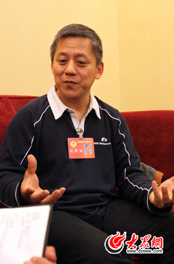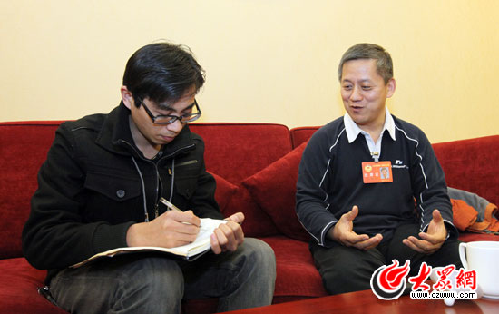 政協(xié)委員宋傳杰接受本網(wǎng)記者采訪,為“百姓點題”中的治堵問題進(jìn)行解讀,并建議“輕限擁有重限使用”來治堵。(盛堃 攝)