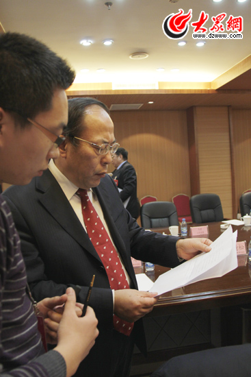 山東省衛(wèi)生廳副廳長(zhǎng)李仲軍(右)認(rèn)真閱讀并回答“百姓點(diǎn)題“欄目中的問(wèn)題(王磊 攝)