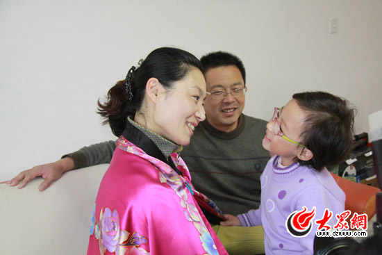 進(jìn)采集室前呂明玉一家人在一起,5歲的孩子茸茸聽到媽媽要近手術(shù)室很不高興