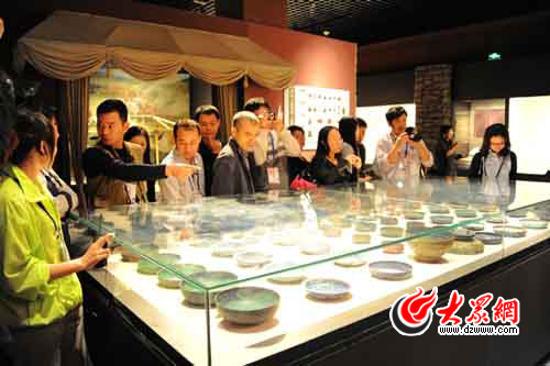 采訪團考察山東省博物館(大眾網(wǎng)記者燕雨 攝)