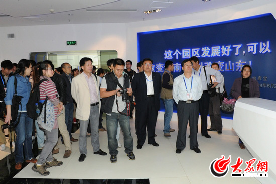 采訪團(tuán)一行走近齊魯軟件園。(燕雨 攝)