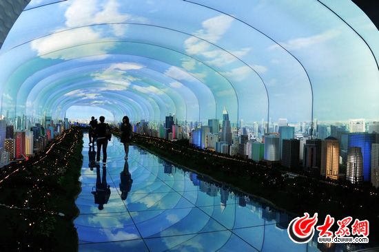 在采訪中記者看到,由全LED燈組成的“大美臨沂”規(guī)劃效果圖在6分鐘的時間內(nèi),通過明暗組合、聲光結(jié)合,介紹了臨沂市10年的城市總體規(guī)劃,最讓記者感到驚喜的是館內(nèi)的環(huán)型“水幕長廊”,記者們漫步于“沂河水面”之上,頭上是藍天白云,河兩岸是規(guī)劃中的建筑模型,順著河面前行,就能看到與實際建筑成比例的電視塔、“帆船”樓,沂河兩岸的都市風(fēng)景盡收眼底。