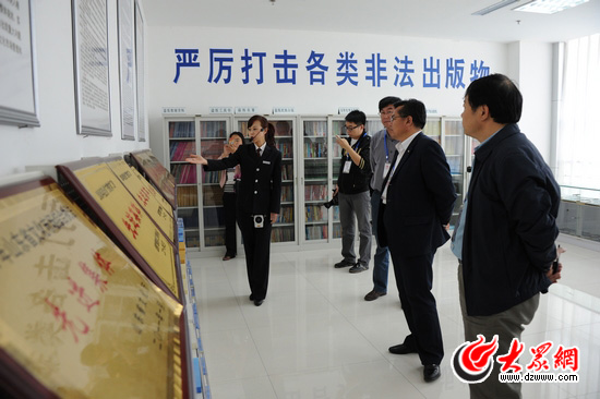 尹海洋 來源: 大眾網(wǎng)[提要] 今天下午,“文化強省看山東——第七屆中國網(wǎng)絡(luò)媒體山東行”采訪團走進臨沂市文化市場管理執(zhí)法局,這個整合三方力量而成的文化市場執(zhí)法部門,開創(chuàng)了全國文化綜合執(zhí)法的新模式,變原來的多部門管理為一個部門綜合管理,關(guān)口前移形成合力,手指成拳出擊有力。