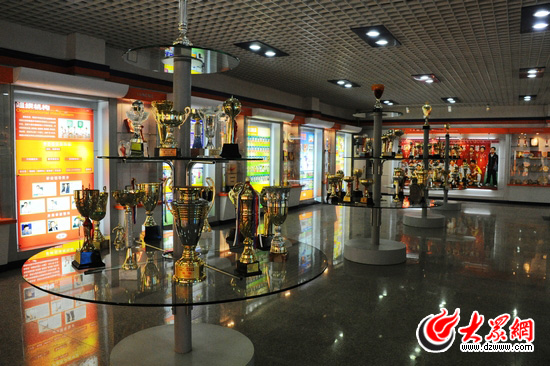 陳列室內(nèi),冠軍獎(jiǎng)杯熠熠生輝。(攝影 燕雨)