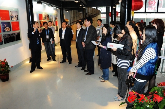 大眾網(wǎng)青島10月23日訊(記者 曹亮)一座廢舊的廠房改建一新,華麗轉(zhuǎn)身成為創(chuàng)意文化產(chǎn)業(yè)集群地,在這個占地不到15畝的產(chǎn)業(yè)園里,卻實現(xiàn)了一年數(shù)億元的收入。23日上午,“文化強(qiáng)省看山東——第七屆中國網(wǎng)絡(luò)媒體山東行”采訪團(tuán)來到青島市的創(chuàng)意100產(chǎn)業(yè)園參觀考察,這里不但形成了創(chuàng)意企業(yè)的產(chǎn)業(yè)集群,而且還是創(chuàng)意人才的“孵化”基地。