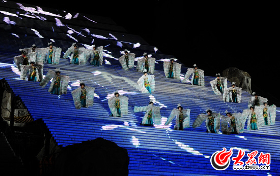 馬鑫 來源: 大眾網(wǎng)[提要] 晚上8點,參加第七屆網(wǎng)絡(luò)媒體山東行采訪團的各家媒體記者們來到天燭峰腳下的《中華泰山 封禪大典》實景演出現(xiàn)場,“盤坐泰山下,眼觀千古情”,在高科技燈光音響映襯下和500余名演員完美的演繹中,品味了一場穿越千年中華歷史的視聽盛宴。