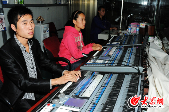 《封禪大典》導(dǎo)播人員正在緊張的忙碌中。(攝影 燕雨)