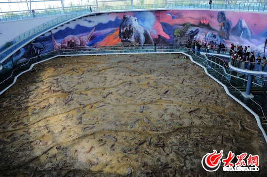 諸城中國暴龍館七層化石原址展示區(qū)。(攝影 燕雨)