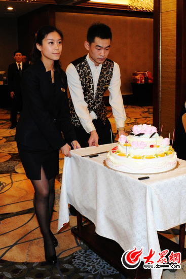 “熟悉的旋律又響起來(lái)了,每一年,這個(gè)旋律是我們的家人和朋友為我們過(guò)生日而準(zhǔn)備的,今天,許多朋友因?yàn)椴稍L(fǎng)而無(wú)法和家人團(tuán)聚,我們?yōu)檫^(guò)這些朋友準(zhǔn)備了生日蛋糕,讓大家共同分享他們的快樂(lè)!”今晚8時(shí),大眾網(wǎng)總編輯朱德泉手持話(huà)筒,出現(xiàn)在了宴會(huì)廳的中央,他一一念出10位壽星的名字,在10月份過(guò)生日的團(tuán)員們欣喜地走上前來(lái),接受這份意外的祝福。生日蠟燭搖曳著,熱烈的掌聲此起彼伏,濰坊市委書(shū)記、市人大常委會(huì)主任張新起,山東省網(wǎng)絡(luò)文化辦公室主任劉致福,濰坊市委常委、宣傳部部長(zhǎng)初寶杰和壽星們一起切開(kāi)了生日蛋糕。