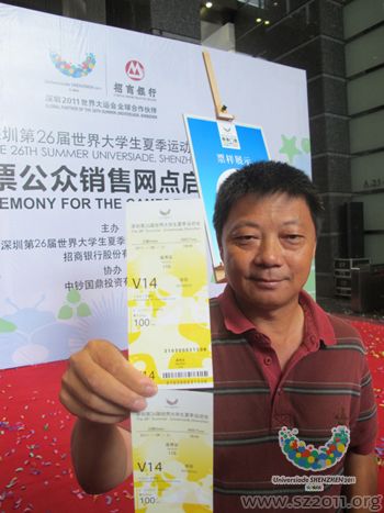 張釗 來(lái)源: 大運(yùn)網(wǎng)[提要] 7月11日上午,深圳2011年世界大運(yùn)會(huì)賽事門(mén)票公眾銷(xiāo)售網(wǎng)點(diǎn)啟動(dòng)儀式在招商銀行大廈總行營(yíng)業(yè)部舉行。大運(yùn)會(huì)賽事門(mén)票今天從這里開(kāi)始面向公眾銷(xiāo)售。