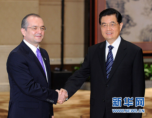 國(guó)家主席胡錦濤12日在廣東省深圳市會(huì)見(jiàn)了來(lái)華訪問(wèn)并出席第26屆世界大學(xué)生運(yùn)動(dòng)會(huì)開(kāi)幕式的羅馬尼亞總理博克。