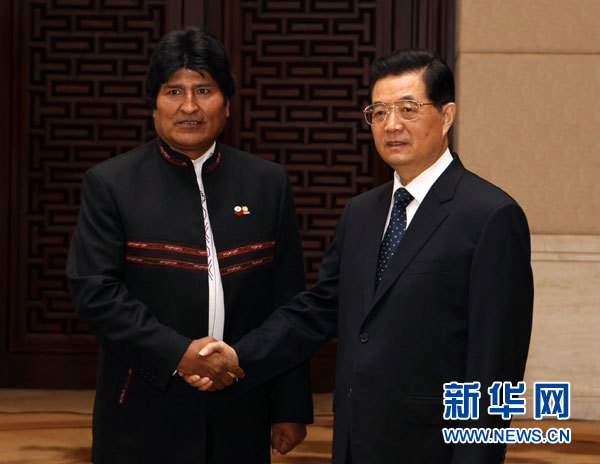 胡錦濤會(huì)見(jiàn)玻利維亞總統(tǒng)莫拉萊斯