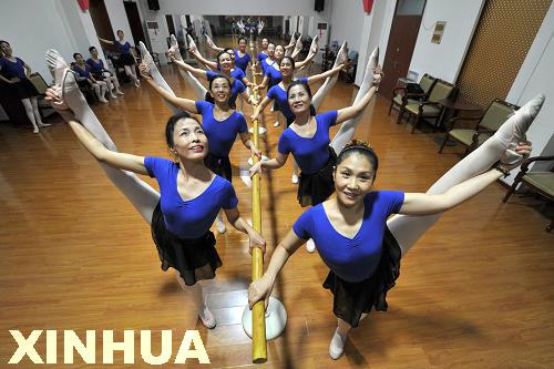 新華網(wǎng)山東頻道9月14日電 在濟(jì)南市老年大學(xué)藝術(shù)團(tuán)里有一支老年芭蕾舞隊(duì),20名隊(duì)員中最高年齡超過65歲,平均年齡55歲。隊(duì)員中很多人沒有專業(yè)舞蹈基礎(chǔ),可是自幼酷愛芭蕾,夢想有一天也能穿上舞鞋,立起足尖在舞臺上翩翩起舞。但對于年過半百沒有任何舞蹈基礎(chǔ)的隊(duì)員來說,學(xué)芭蕾確實(shí)是件很艱難的事。57歲的帶隊(duì)人冉玉潔專門制訂了一套針對中老年人的芭蕾舞學(xué)習(xí)計(jì)劃,并帶領(lǐng)隊(duì)員們練形體、基本功,一練就是整整兩年。
