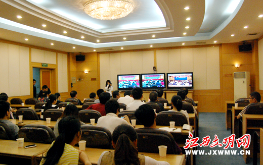 5月16日,全國(guó)創(chuàng)建“文明網(wǎng)站”活動(dòng)視訊會(huì)議在北京召開,圖為江西分會(huì)場(chǎng)現(xiàn)場(chǎng)。(江西文明網(wǎng)記者 梁爽 攝)