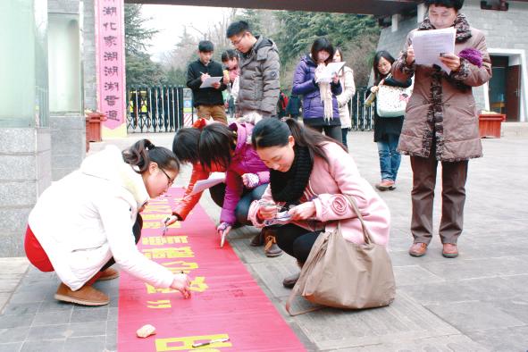 1月15日上午,“愛心融雪.溫暖2012”關(guān)愛老年人簽名活動在相山公園入口廣場舉辦,來往游人紛紛響應(yīng),簽下自己對老人的新年祝福話語。