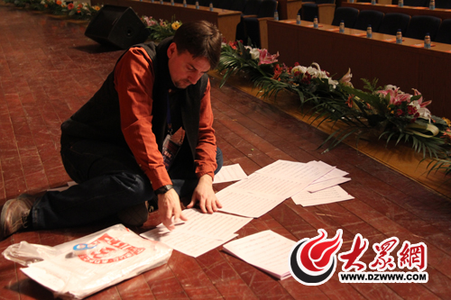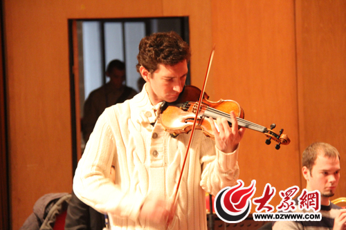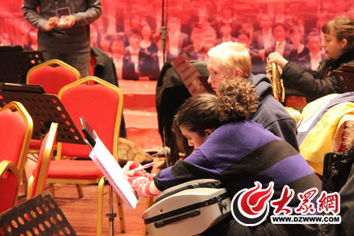 大眾網(wǎng)濟南12月23日訊(記者 馬鑫)“It's a big room!(演出場地真大。眱擅筇崆偈诌M入山東會堂后不由地贊嘆。今天下午4點,參加今晚“2012年建行之聲新年音樂會”的美國費城國家交響樂團的樂隊成員,以及特邀指揮指揮茲沃尼米爾·哈克先生和首席小提琴手馬克斯·佐琳先生來到山東會堂,開始了正式演出前的集中彩排。