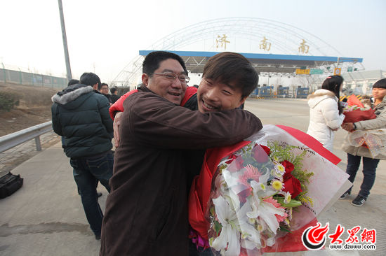 大眾網(wǎng)總編輯朱德泉深情擁抱采訪團記者劉國棟