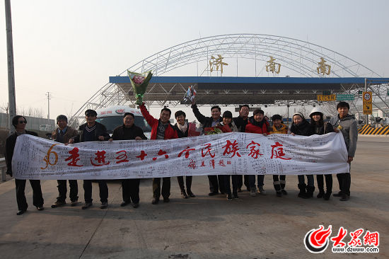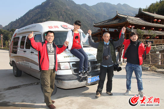 大眾網(wǎng)采訪(fǎng)團(tuán)隊(duì)在途中合影,特約記者施曉亮(左)、特約小記者施哲瑩(左二)、網(wǎng)友李東岳(左三)、大眾網(wǎng)記者劉國(guó)棟。