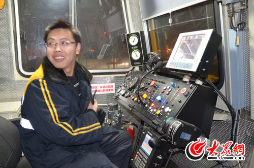 記者攀上運行中的機車。(大眾網(wǎng)記者 馬鑫攝)