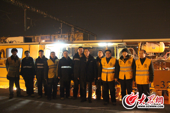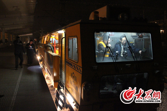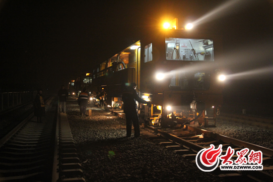 朱德泉 馬鑫 來(lái)源: 大眾網(wǎng)[提要] 1月13日晚上8點(diǎn)28分,淄博市臨淄火車站前,漆黑、安靜。大眾網(wǎng)記者跟隨濟(jì)南鐵路局工務(wù)機(jī)械段的20多名維修工走上月臺(tái)。此時(shí),鐵軌上,一組50多米長(zhǎng)的維修機(jī)車正靜臥在膠濟(jì)鐵路客運(yùn)專線上,等待我們的到來(lái)。